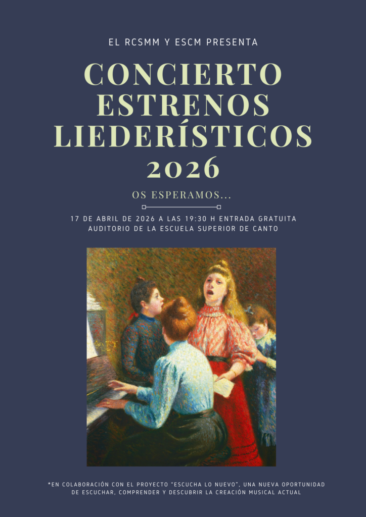 19:30 Teatro de la ESCM: Estrenos Liederísticos 2026 (Proyecto de colaboración con el departamento de composición del RCSMM)